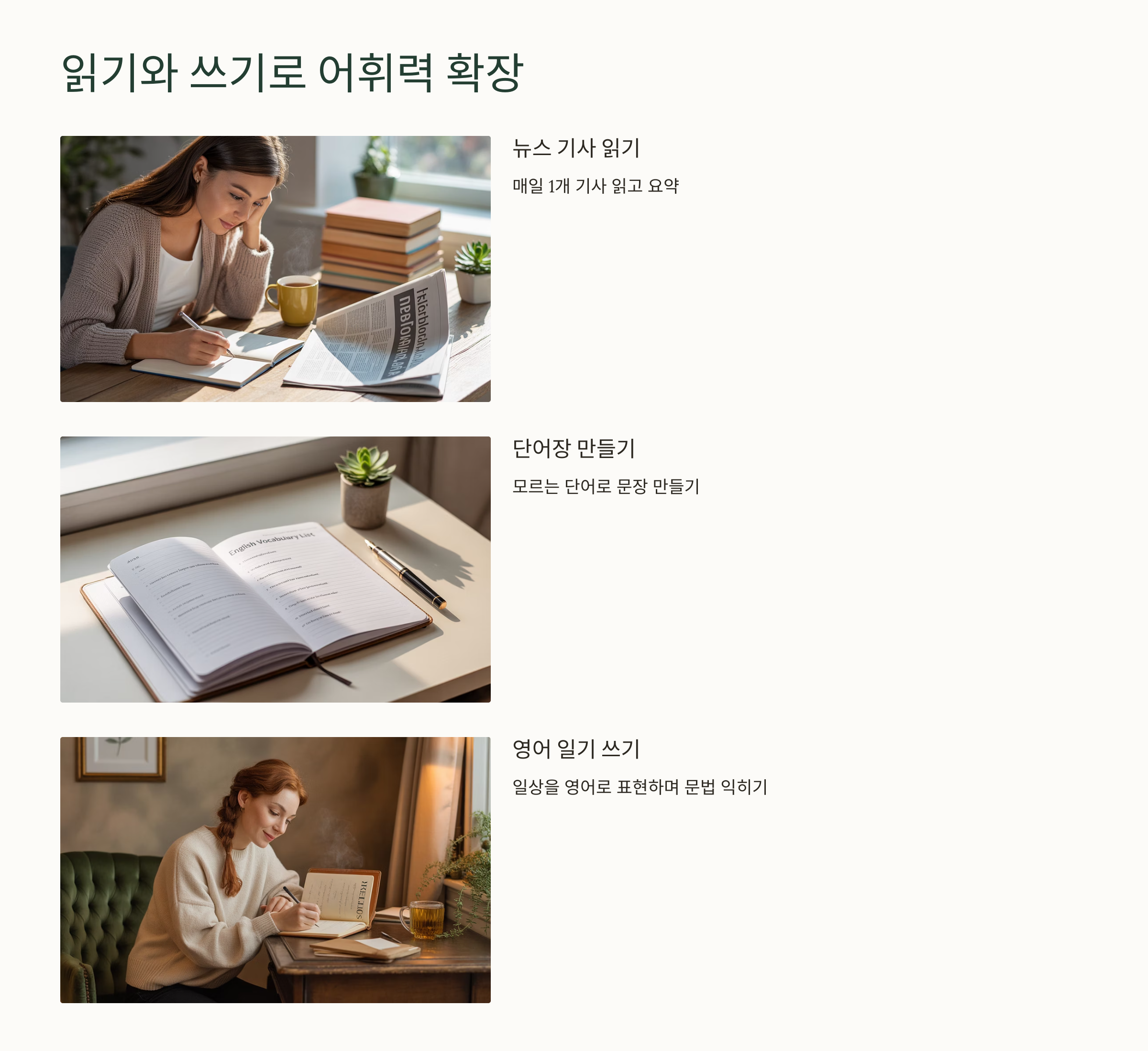 - 읽기와 쓰기 병행으로 어휘력 확장