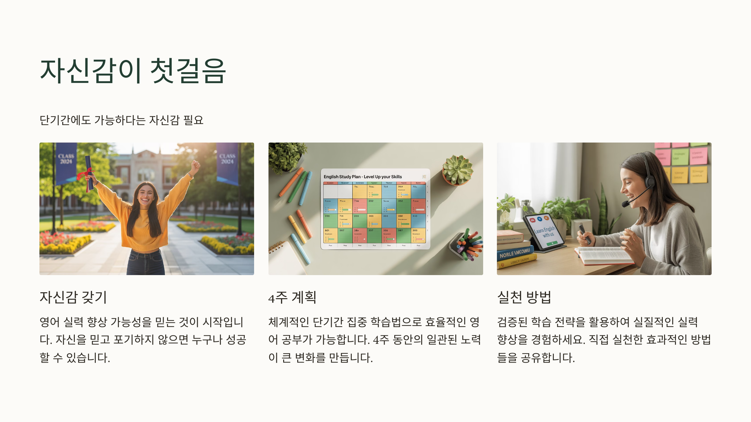 영어를 잘하고 싶다면, 단기간에도 가능하다는 자신감을 먼저 가져야 해요. 검증된 학습법으로 4주 만에 실력이 눈에 띄게 오를 수 있어요! 제가 직접 실천한 방법들을 공유해볼게요. 😊