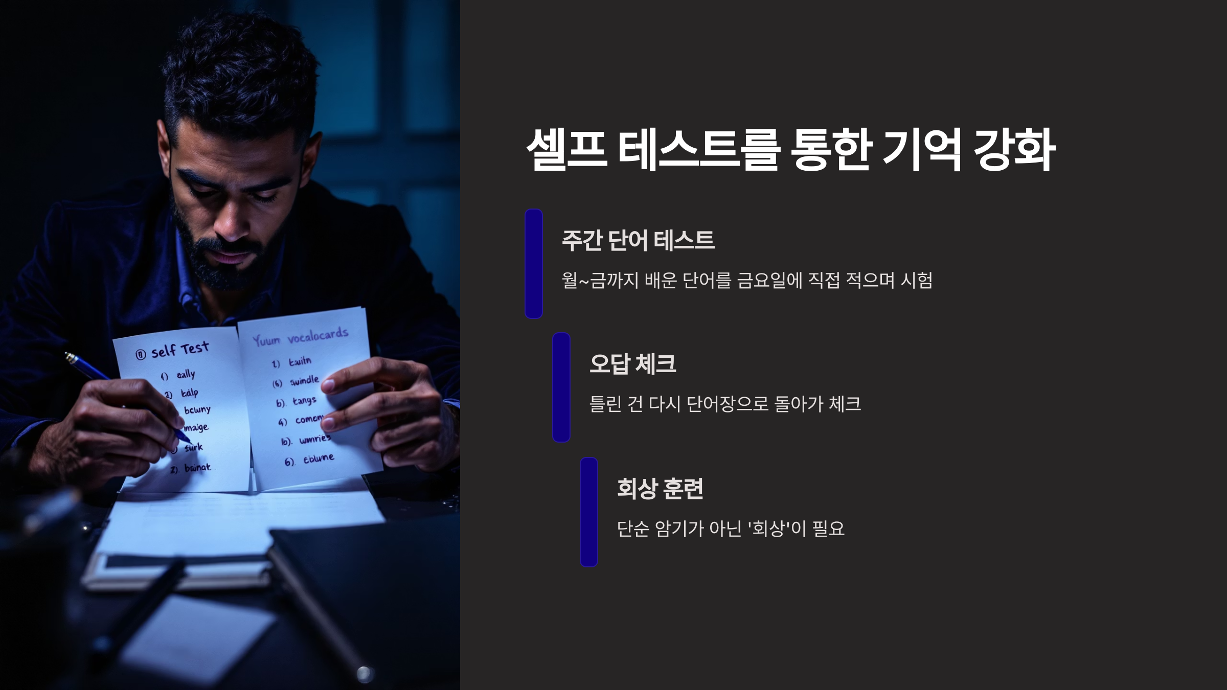 - 셀프 테스트를 통한 기억 강화