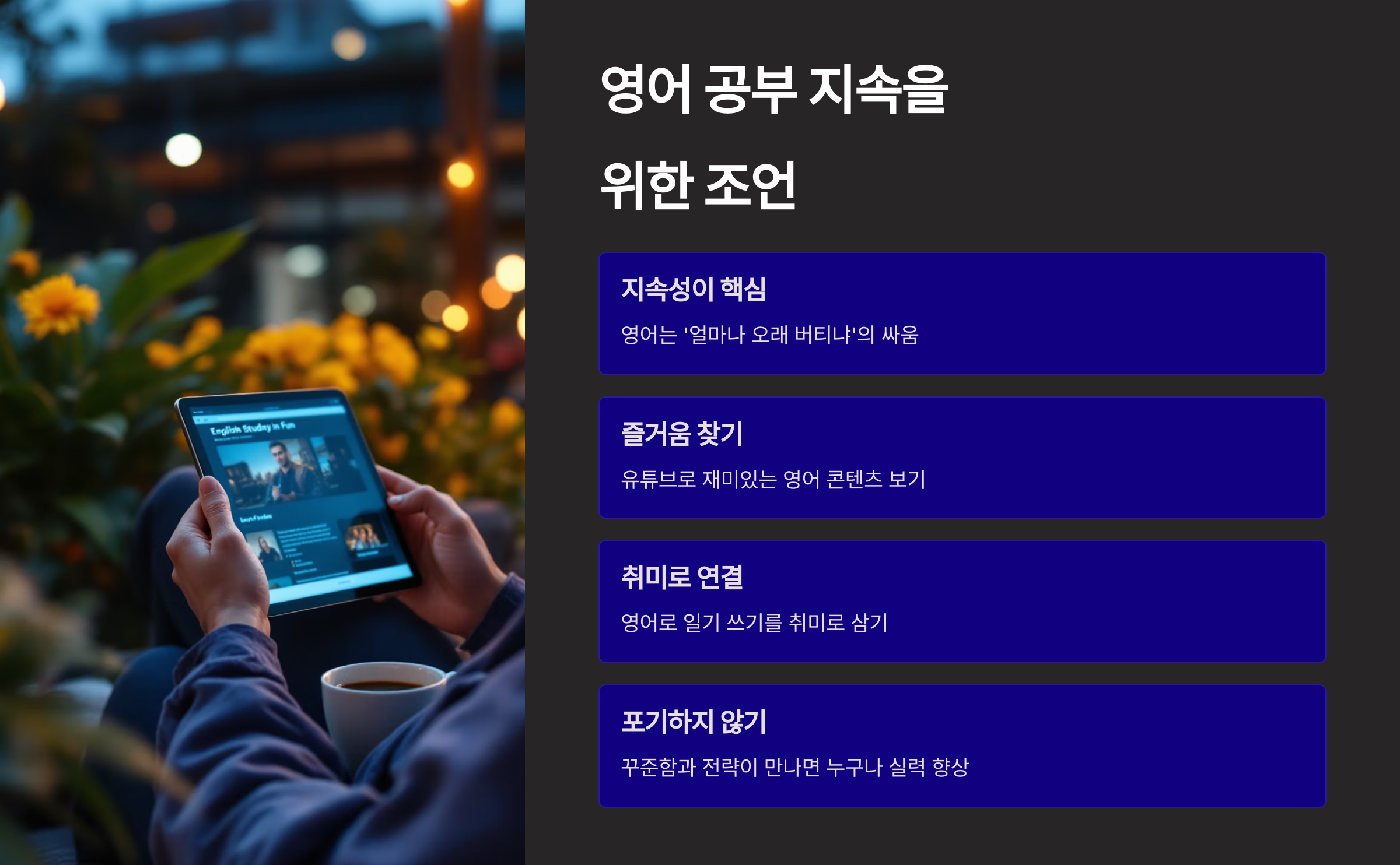 - 영어 공부 지속을 위한 조언
