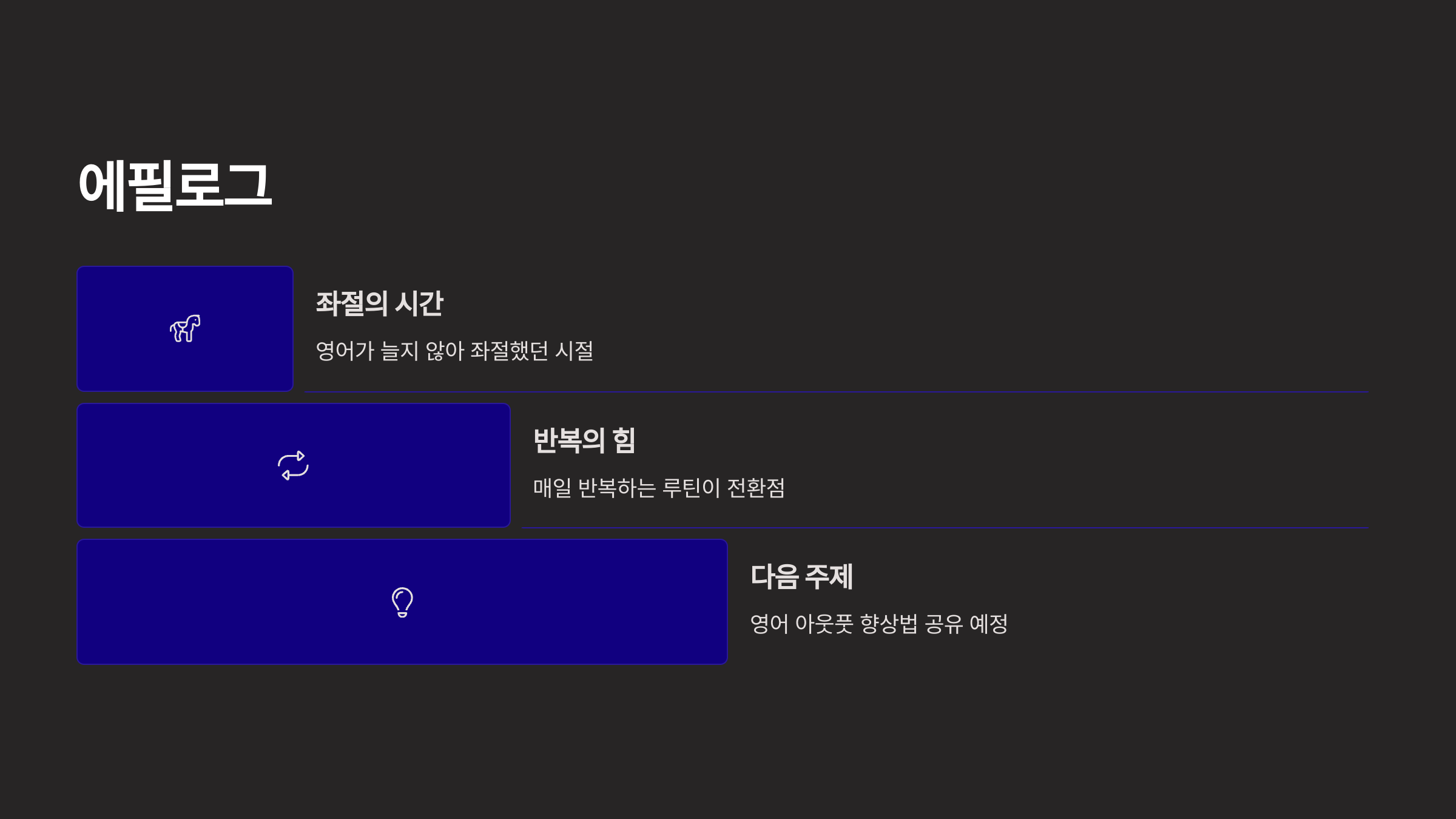 이 글이 여러분의 영어 공부에도 작은 동기부여가 되길 진심으로 바랍니다.