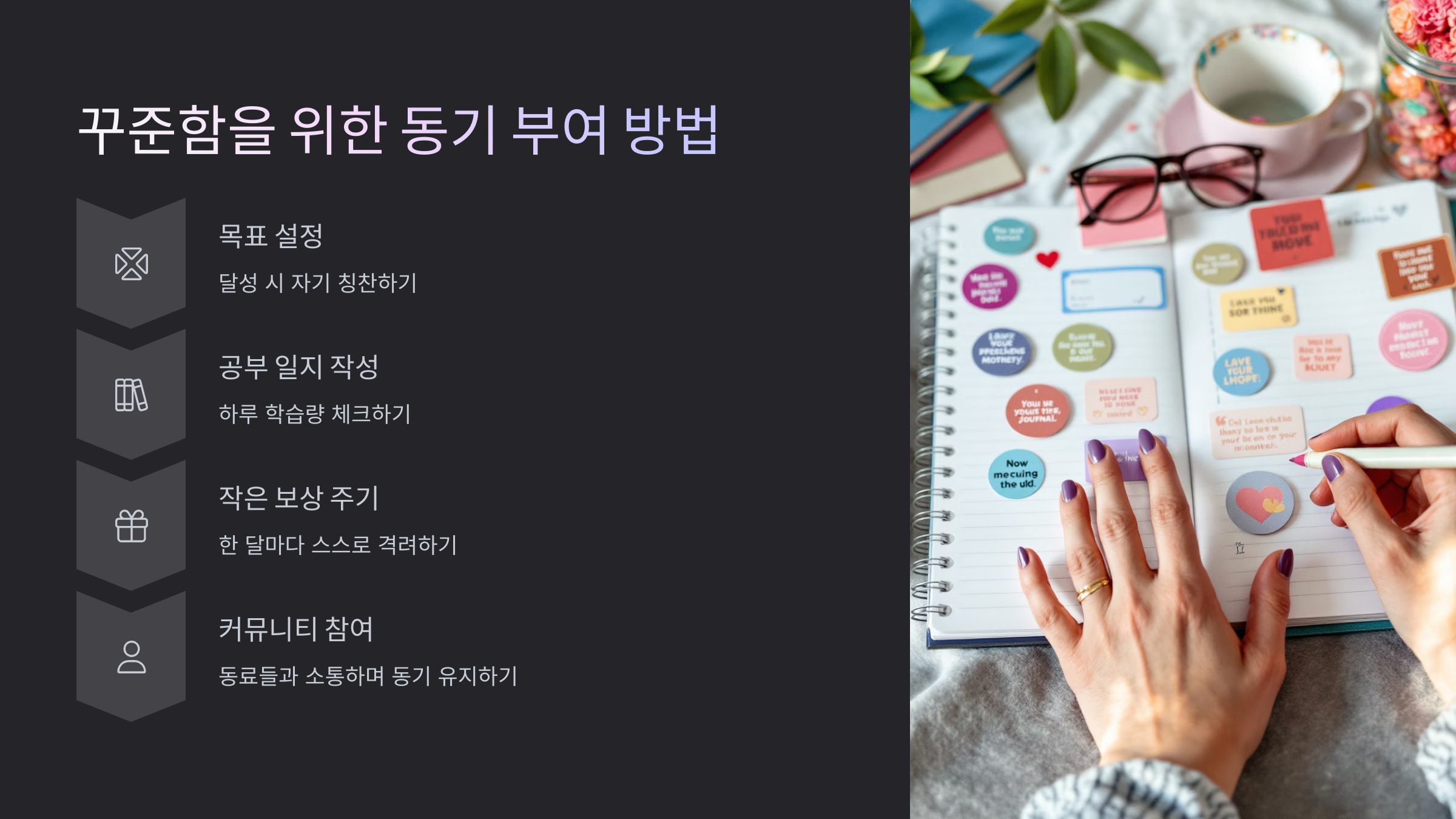 - 꾸준함을 위한 동기 부여 방법