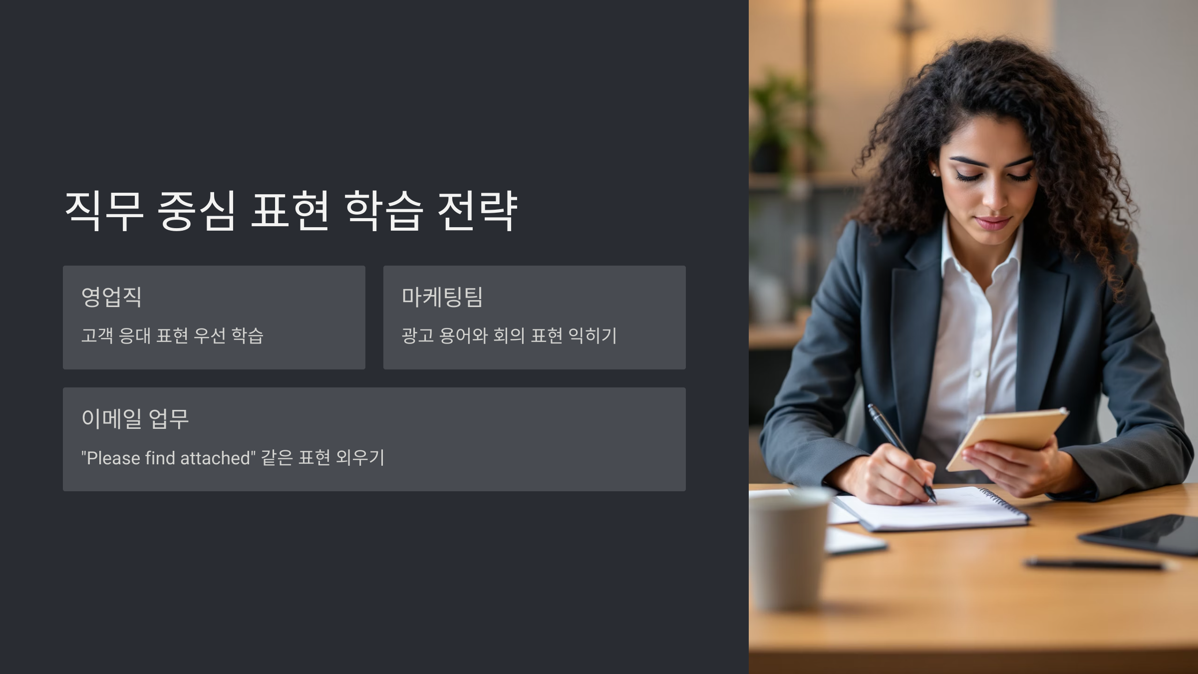 - 직무 중심 표현 학습 전략