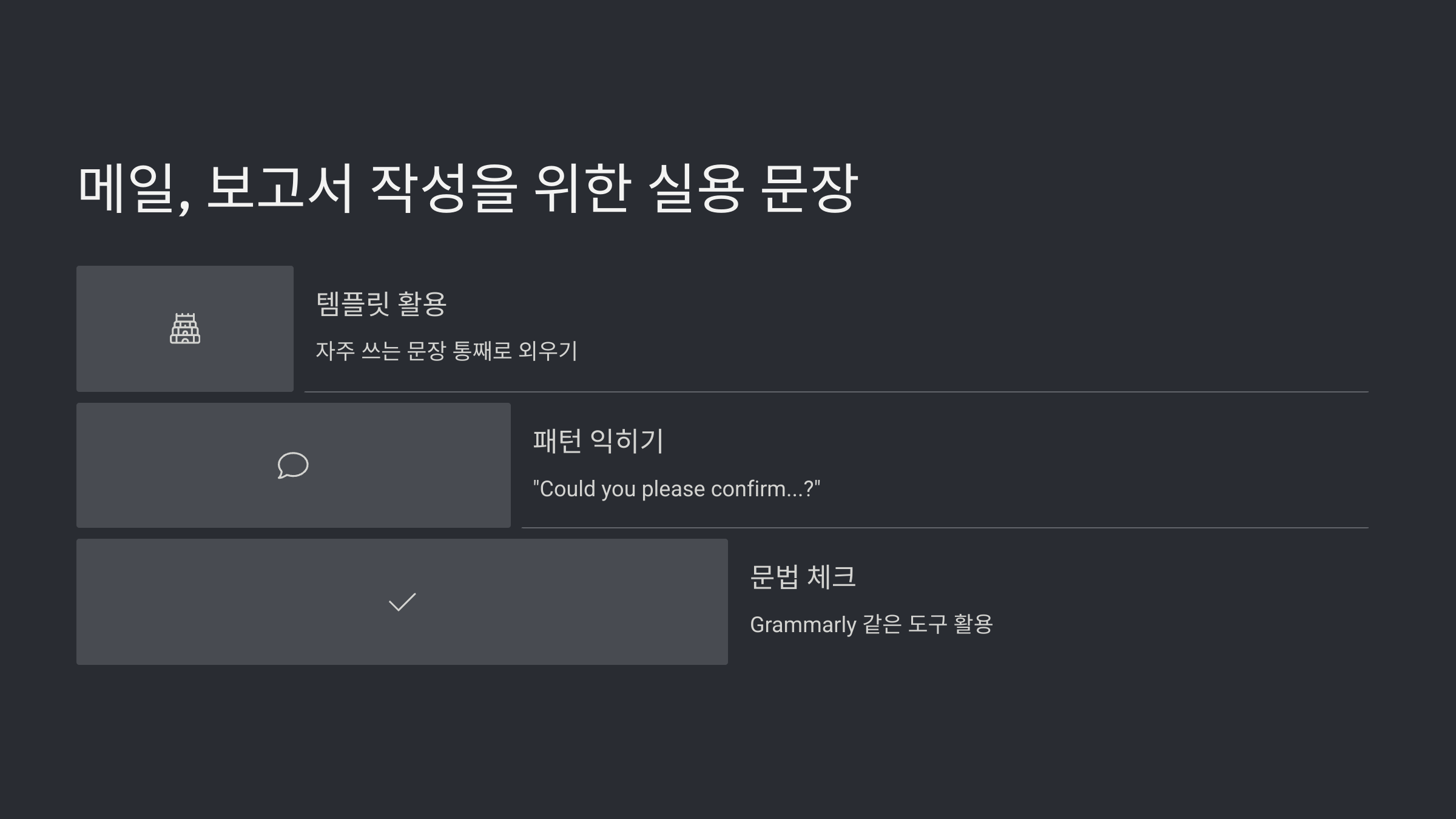 - 메일, 보고서 작성을 위한 실용 문장 익히기