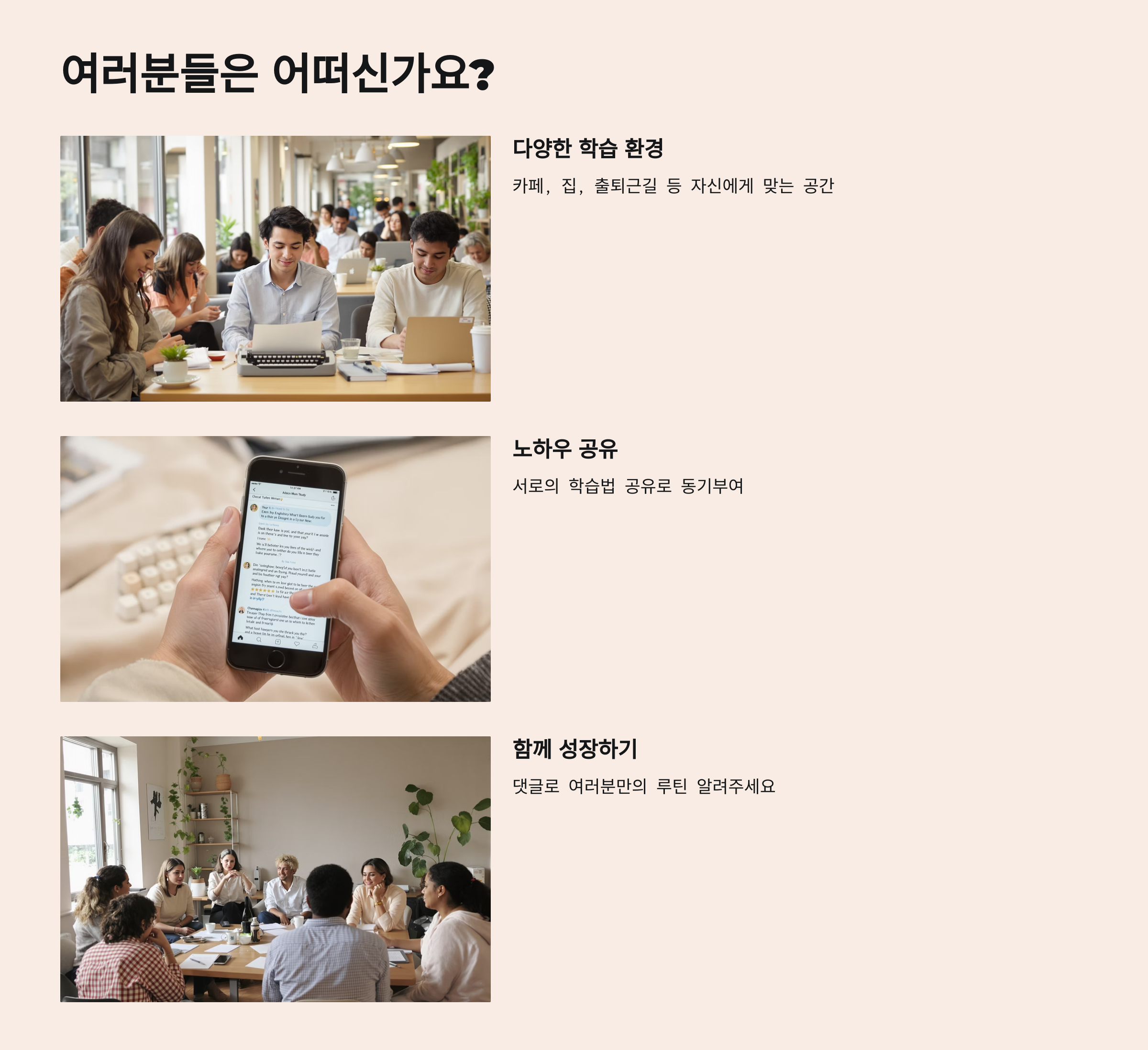 여러분도 하루 30분 학습을 실천하고 계신가요? 어떤 콘텐츠를 활용하시나요? 댓글로 여러분만의 루틴을 알려주세요! 서로의 노하우를 공유하며 더 많은 사람이 영어를 즐겁게 배울 수 있도록 함께해요 🥰