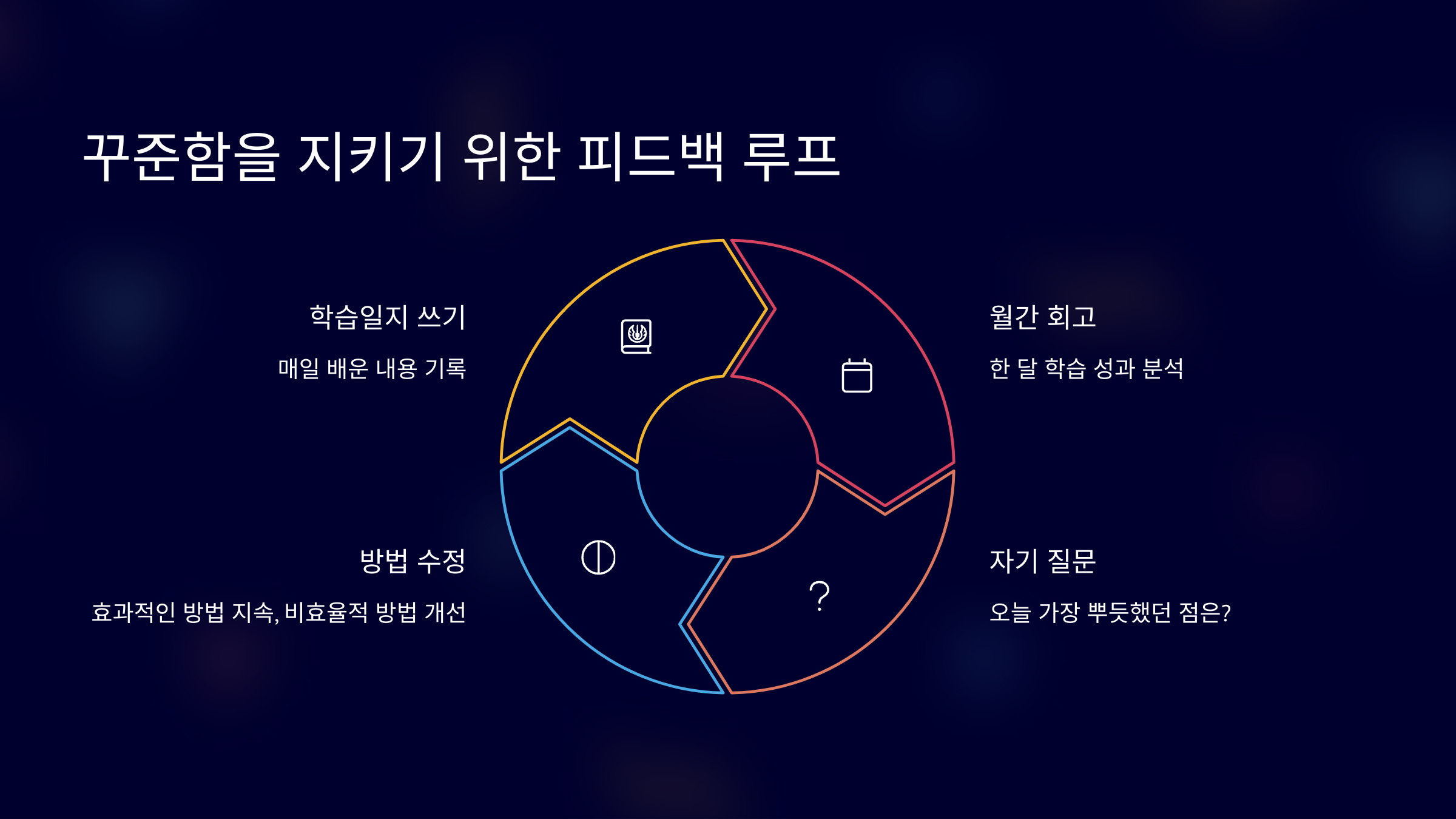 이런 피드백 루프가 지속력을 만들어줍니다. 결국, 영어는 꾸준함이 이깁니다!